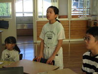 熊野江小の6年生は、先日行われた「熊野江小と南浦中合同ふるさと祭り」で発表したスピーチをしました。3年生は、グランドゴルフの来ていただいている地域の方と野菜の種を植えたことのスピーチでした。