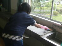 虫の死骸やほこりなどだいぶたまっていました。手洗い場は、水垢やさびなどが多く見られました。それらをクレンザーなどを使って落としていきました。かなり頑固なよごれでしたが、6年生の力で落とすことができました。