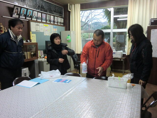 校長室で洗口液を作ります。ミスが無いよう複数の職員で作ります。