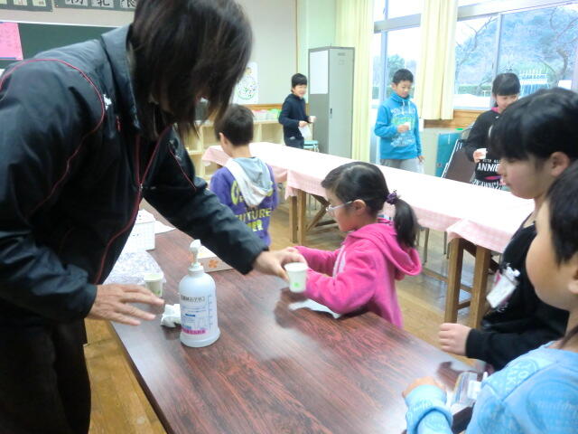 週1回、洗口液によるブクブクうがいを行うことで、虫歯を予防する取組です。