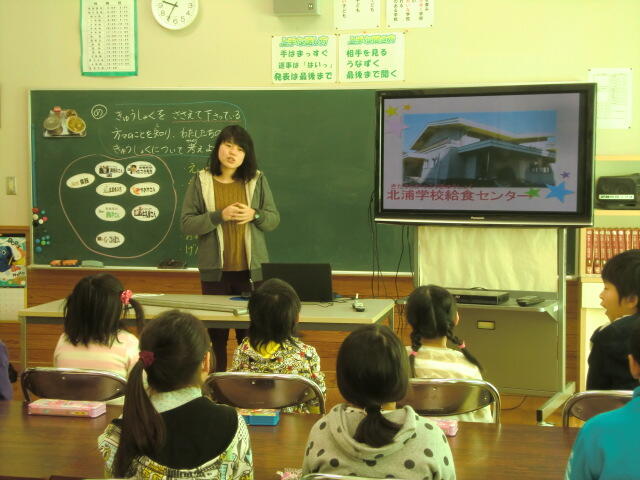 北浦学校給食センターの栄養教諭にゲストティーチャーとして来ていただきました。