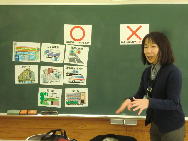 はじめに、小学生にも身近な「消費税」の話題から。さらに、税の種類や使い途などを学びました。