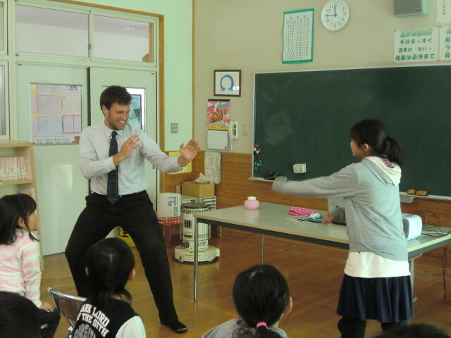 開場までまだたっぷり時間が…。ヒマをもてあましていたら、ALTの先生方が遊んでくれました。