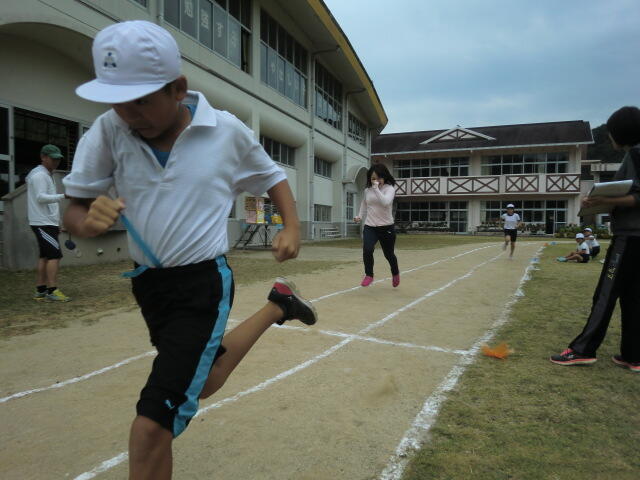 今年の運動会の徒競走は、一緒に走る友だちとの競争ではなく、自分の設定タイムがクリアできるかという内容です。