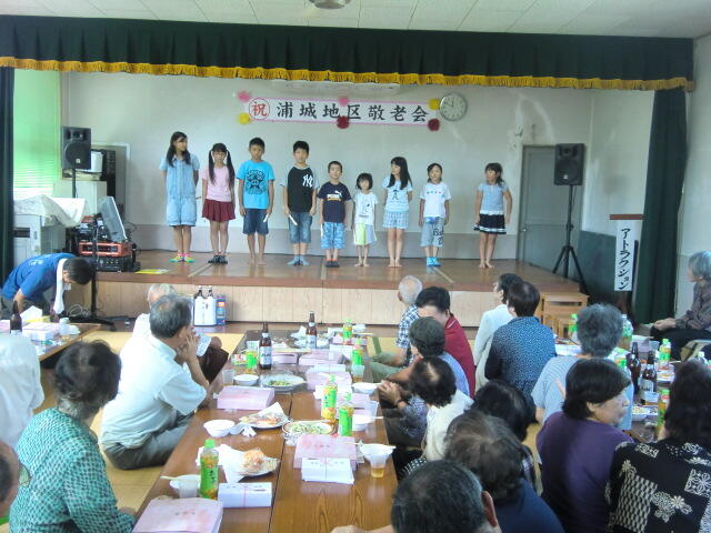 台風18号の影響で順延となりましたが、17日(月)に浦城区の敬老会がありました。
