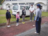はじめにお話を聞いた後、通学するところや信号のある横断歩道で、横断の仕方を練習しました。