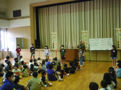 早速、班での役割分担の話合いがありました。浦城小学校の子どもたちも主体的に参加していってもらいたいと思っていましたが、なんと5年生の2人は、ともに班長となっていました。1年生も臆することなく班の活動に参加していました。進んで参加する態度がとても立派でした。