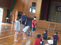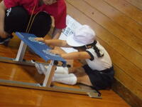 体力テストでは、立ち幅跳びや反復横跳び、シャトルランなど6種目を、南浦中学校の体育館で行いました。熊野江小のお友達もいたこともあり、浦城小の子どもたちも刺激を受けて、自己最高記録を連発していました。