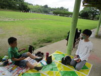 田植えが終わった後は、熊野江小学校の友達と一緒に昼食をとりました。また、一緒に過ごす時間ができてよかったです。