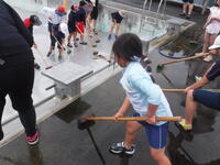 6月12日(月)は、プール掃除を行いました。港小学校のみなさんが来てくれて、一緒に掃除をしました。
