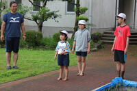 プール掃除が始まりました。みんなで一生懸命、かべをこすったり、プールの底をみがいたりしました。