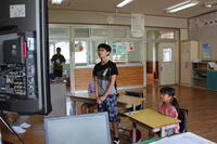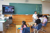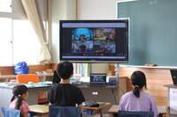 子どもたちのコミュニケーション能力を高めるために、熊野江小学校とミートでつないで朝の会をすることにしました。
