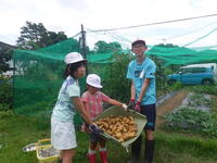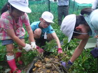 4月に植えたじゃがいもの収穫を行いました。1年生もじゃがいものくきを引っ張ったり、土の中からじゃがいもを掘り出したりしてがんばりました。