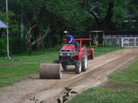 浦城小学校の運動場に50mコースを作るために、運動場の改修を進めています。