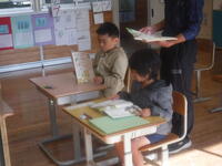教科書をお話をもとに、みんな気持ちなどを考えていました。進んで発表もしていました。全員が手を挙げていてとても意欲的でした。最後の振り返りもよくできていました。
