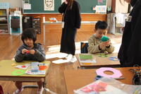 1時間目は図工のリース作りでした。保健の先生の指導でクリスマスに向けての飾りを作りました。