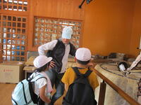 塩の資料館で、昔の塩作りの工程を表したパネルや使われていた道具を見学しました。資料館の中には、塩で出来ているペンギンの像などもあり、とても楽しめました。