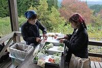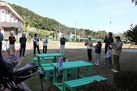 お天気を心配しましたが、気温もそんなに低くはならず、屋外でのピザ作りも景色を眺めながら取り組めました。眼下に広がる果樹園を見ながら、「次は、子どもたちと果物刈りもいいよね。」と話されていました。