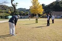 今回は、児童、地域の方との交流活動ということで、毎週水曜日に行っているグラウンドゴルフに、学校運営協議会の委員の皆さんも参加していただきました。どんな交流活動が行われてるかを知っていただくためです。ふだんあまりプレーされていない方もおられたと思いますが、楽しくプレーできました。