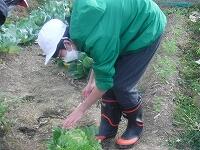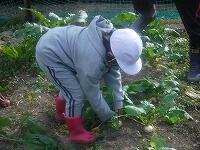 次は、農園に行って、豚汁の材料の収穫です。白菜と小カブ、人参などを分担して収穫しました。自分たちで育ててきた野菜ですから、きっとおいしい豚汁になるでしょう。