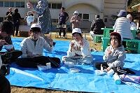 児童・家族、地域の皆さんと一緒に小春日和の気持ちよい青空のもと、グランドゴルフを楽しみました。