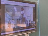 12月21日(木)は、熊野江小学校とのミート朝の会でした。今回は熊野江小学校の進行で進められました。