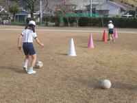 3校時は、合同で体育でした。ボール蹴りゲームということで、ドリブルやシュートの練習をしました。そのあと、3対3に分かれてゲームをしました。みんな元気いっぱい動いて汗が出るほど動いていました。