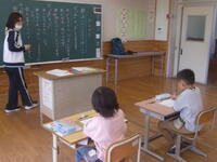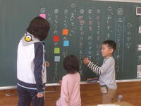 4校時は1、2年生で国語でした。基本的な仮名遣いなどを学習しました。給食や昼休みまで仲良く過ごして、とても楽しくできた交流学習でした。