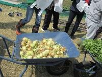 空飛ぶ新玉ねぎ収穫 ~たくさんの地域の方と一緒に収穫しました~