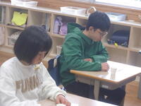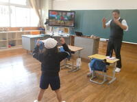 1年生の体育は、リズム遊びをしていました。5年生の音楽は、聞き取りのテストや楽典などのテストでした。最後までがんばっています。