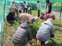 3月22日(金)の3校時に、空飛ぶ新玉ねぎなどの収穫をしました。地域の方にも呼びかけをしていたので、たくさんの方々がお見えになり、一緒に収穫作業をしていただきました。まずは、新玉ねぎを収穫しました。200個ほどあった玉ねぎは、あっという間に収穫されました。その後、小カブと春菊の収穫もしました。ちょうどよいくらいの大きさになっていたので、地域の皆さんも喜んで採ってくださいました。今年度の野菜の収穫はひとまず終わりです。1年間御協力ありがとうございました。