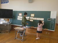 この日のめあては、「ともだちとなかよくしていくためには、どんなことが大切でしょう。」でした。教科書の教材文を読みながら、登場人物の思ったことを考えていきました。最後には、友達と仲よくしていくために大切なことを考えて出し合い、「いつも笑顔でいること」「人のものをこわさない」など子どもたちなりに考えた意見が出ていました。みんながんばった道徳の時間でした。