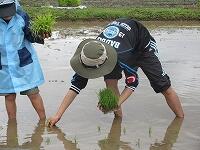 参加した浦城小の子どもたちは、田植えの仕方はよく分かっているので、他の学校の友達と一緒にスムーズに田植えの作業を進めることができました。リーダーになっている6年生は、班のメンバーの様子を見ながら声かけもしていました。学校で行った田植えと違い、広い田んぼの田植えだったので、時間も労力もかかりましたが、先生方の助けもあり、最後までやり遂げることができました。充実した田植え体験でした。