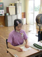 6月27日からの野菜販売に向けて、6月20日の朝の時間と1時間目に、収穫や袋詰めの練習を行いました。まずは、収穫や袋詰めの役割分担を決めました。自分の担う野菜を決めて、収穫から袋詰めまでを行っていきます。分担が決まったら、小雨の中でしたが、収穫に行きました。きゅうりやなす、ピーマンなどがたくさん実っていました。これらを収穫して多目的室で、袋に詰める作業をしてみました。約半年ぶりの作業でしたが、手順を思い出して進めていくことができました。来週からいよいよ野菜販売です。今日の練習で、気持ちも高まってきました。