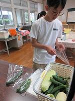 まずは、朝、雨の中、南農園の野菜の収穫でした。トマト、ピーマン、ナス、きゅうりなどの野菜をがんばって収穫しました。その後、1時間目から多目的室で袋詰めとなりました。収穫した野菜を手際よく袋に詰めていくことができました。