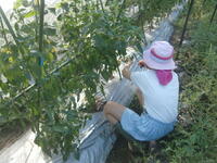 今回は、久しぶりにスイカの販売をしました。7月にサルやアナグマの被害に遭って、スイカはほぼ全滅状態でした。被害後に育ってきたスイカがようやく収穫の時期を迎え、11日に出荷することができました。トマトやキュウリを収穫した後、6年生がスイカを数個収穫しました。収穫後、多目的室で袋詰めをしました。スイカは、中身がわからないので、今回は半分に切って売り出すことになりました。