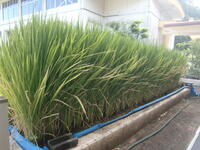 夏休みも後半になりましたが、学校田の稲が出穂しています。5月の末に田植えをしてから約3か月、順調に育ってきてました。穂が出ると、朝のうちに小さな稲の花も見られます。この穂が、約1か月後には黄金色に実っていくことでしょう。(これからも水の管理など大事な時期です。)