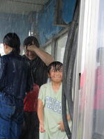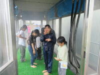 後半のどしゃぶり体験では、20mmから180mmまでの雨を体験しました。50mm以上の雨となると、かさは全く役に立たず、まさにびしょぬれ状態でした。豪雨の時はあのような雨が短時間に降ることがあるので、台風のシーズンでは気を付けたいですね。