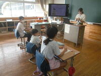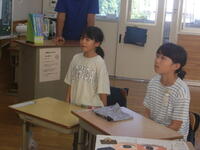 9月26日(木)の朝の時間は、ミート朝の会で、熊野江小学校とオンラインでスピーチをしました。この日は浦城小の当番で司会でした。浦城小からは、図工や生活科で作成した作品の紹介や家庭科で作ったものの紹介などをしました。熊野江小からは、3連休の過ごし方などがスピーチされました。質問の時間はそれぞれ聞かれたことについて答えていました。盛り上がって時間が足りないくらいでした。