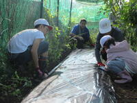 9月26日(木)、南の農園の野菜の栽培に向けて、畑の準備をしました。まずは、堆肥や肥料をまく作業です。全体にまんべんなくまいていきました。その後、耕運機で耕した後、うねを立てました。くわの使い方は難しいですが、なんとか幅50㎝くらいのうねができました。最後にマルチを張りました。先生と子どもたちと協力してマルチ張りまでしたので、だいたい1時間で作業が完了しました。秋から冬に向けて、野菜を植える準備ができました。なかなか大変な作業でしたが、やりきることができました。6年生は「宮沢賢治」の世界も味わえたのでは?