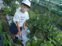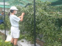 朝一番は収穫作業です。ピーマンやとうがらしなどを収穫しました。朝の会が終わってから、袋詰め作業です。分量に沿って詰めていきました。