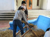 稲の脱穀 ~千歯こぎを使って脱穀しました~