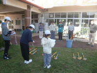 10月30日の昼休み時間は、久しぶりのふれあいタイムでした。学校のみんなと地域学校協働活動推進員(以下、推進員)、ALTの参加でグラウンドゴルフでした。