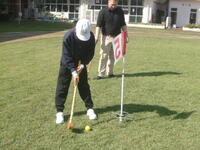 この日は天気がよく、グランドコンディションもとてもよかったです。そのせいか、ホールインワンが2人も出ました。運動場で、久しぶりに歓声が上がりました。また、好プレー、珍プレーに笑い声が響いていました。ALTの先生が7ホール14打で1位となりました。久しぶりに明るい雰囲気でふれあいタイムができました。
