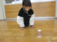 2年生が選んだおもちゃは「コトコト車」です。紙コップとペットボトルのキャップと輪ゴムを使って、「トムとジェリー」のジェリーが走る「コトコト車」を作りました。