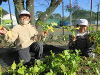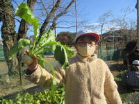 1月8日(木)の午後、昨年種まきをした「かぶ」の収穫をしました。この種は、地域のお世話になっている方からいただいたもので、3種類のかぶが実りました。子どもたちは、「これ大っきい!」「これ小っちゃい、かわいい!」などと楽しそうに収穫を喜んでいました。収穫したかぶは、地域の方にもプレゼントし、喜んでいただきました。学校園では現在、スティックセニョール、ブロッコリー、白菜、レタスなどを育てています。