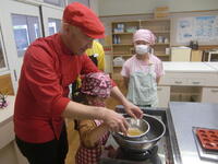 グミ作りも体験させていただき、市販の材料を使った実習もありました。材料を混ぜたり、湯煎したりとお菓子作りの一端を経験しました。できあがったグミの試食もしました。