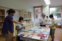 図書室に入れてもらう本を子どもたちにも選んでもらうものです。延岡市の業者さんが家庭科室に新刊を並べてくださり、子どもたちは新しい本を手にとって読んでいました。