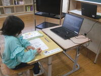 いつものワークテストのようにすぐに終わる問題の量ではなく、50問以上あるテストです。1年生にとっては集中して最後まで問題に取り組むことがまず大事です。問題をよく読みながら問題を解いていました。5年生は経験はあるものの、問題の難しさがありますので、悩みながら解いていっていました。