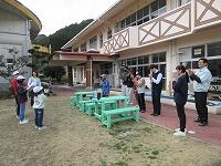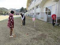 2月7日(水)は、恒例のふれあいタイムです。子どもたち、先生、地域の方が一緒にグラウンドゴルフをする日です。この日は、ALTの先生や地域の高校生なども入ってプレーを楽しみました。